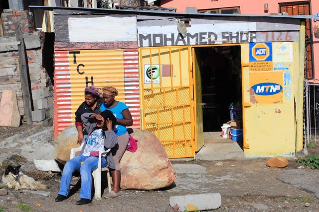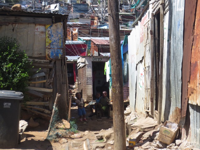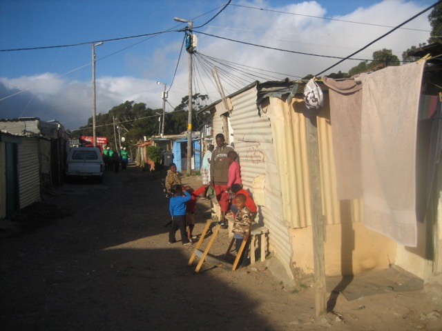 Vor den Städten der Weißen bauten sich die Schwarzen aus dem, was sie bekommen konnten, kleine Unterkünfte. So entstanden zahlreiche “shacks”; notdürftig aus Holz, Wellblech und Plastik zusammengezimmerte Unterkünfte. Nach und nach wurden auch Dienstleister des täglichen Bedarfs ansässig; Lebensmittelverkäufer, Friseure, Bäcker, Metzger, Schuster öffneten ihre shops. So entstanden nach und nach kleine Städte vor den Städten; eben die Townships bzw. Vorstädte.