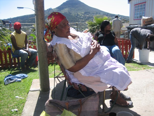 Und so lernte ich auf den Touren mit Kevin einige Kinder näher kennen und bekam so langsam ein “feeling” für ihre, mir noch fremde, Lebenswirklichkeit. Als Kevin auf einer dieser Touren -nur kurz- bei einer Bekannten vorbei schauen wollte, saß ich ein paar Minuten später im Wohnzimmer einer Sangoma. Sangoma sind in Südafrika hoch angesehene “Heiler”. In ihrem Wohnzimmer entdeckte ich auf dem Boden Tierknochen, Muscheln, Dominosteine, Federn …; eben ihr “Arbeitsmaterial” … und nun merkte ich, dass ich irgendwie in “meiner neuen Heimat” angekommen war 😉 🙂 .
