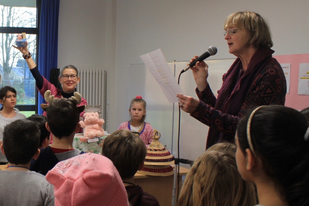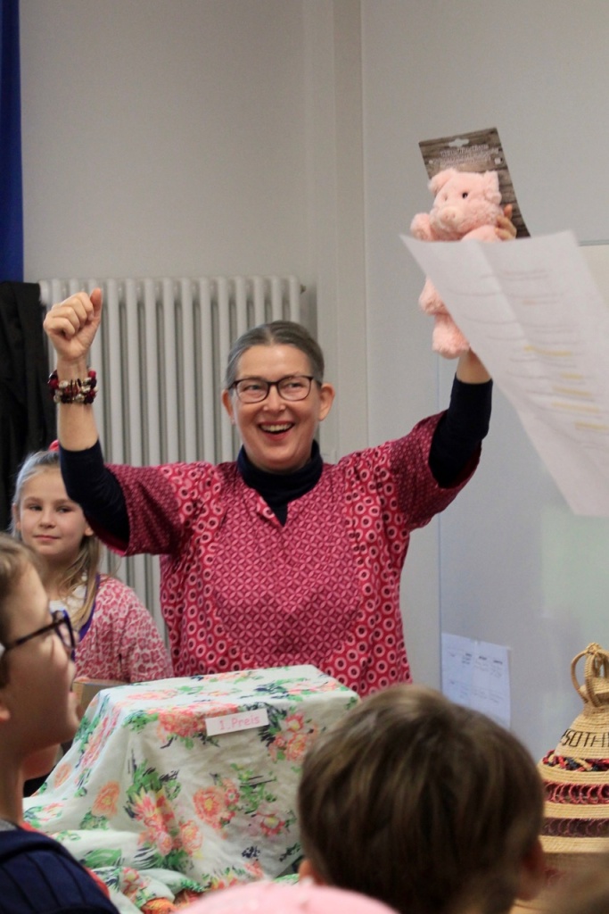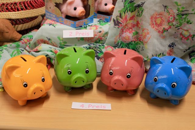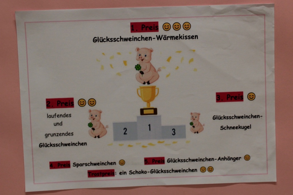 Die Lose waren sehr begehrt und schnell ausverkauft 😉 🙂 . Am dritten Tag der Glücksschweinchen-Verlosung gab es dann die Preisverleihung, auf die alle gespannt gewartet hatten. Frau Daberkow verlas die Namen der Gewinner und Frau Andresen überreichte den glücklichen Gewinnern ihre Preise 🙂 🙂 :-).
