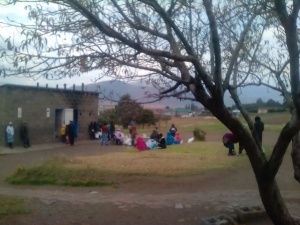Die Kinder, die mit ihren Familien hier in Mokhotlong leben, dürfen jeden Tag zur Schule kommen, um dort ihr Frühstück (porridge) und ihr Mittagessen (pap with vegetables) abzuholen. Dabei achten wir sehr darauf, dass wir viel Abstand zueinander halten (mindestens 3 Meter).
